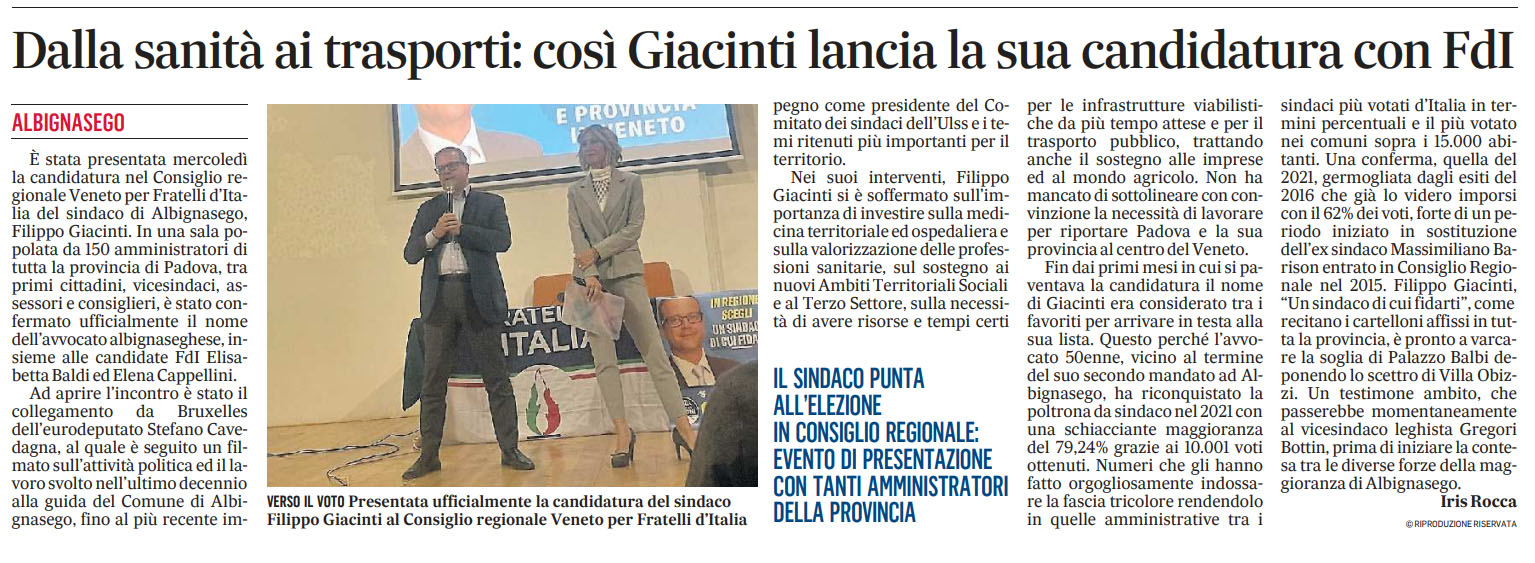 Filippo Giacinti candidato Fratelli d'Italia di Giorgia Meloni