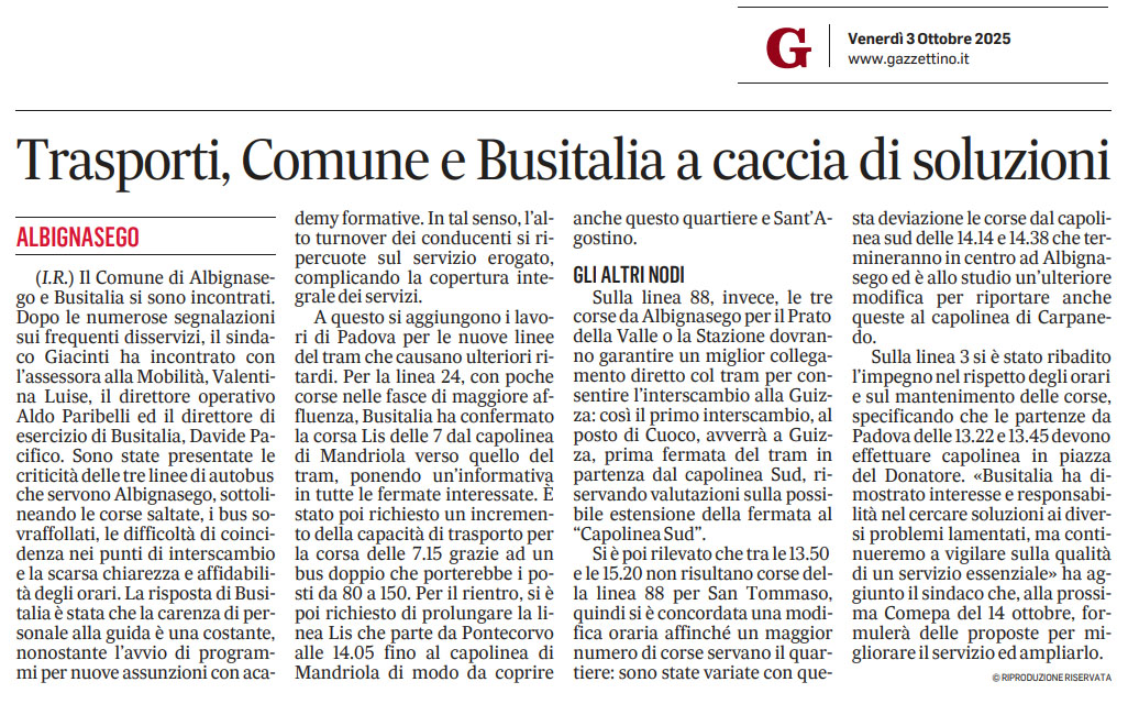 Trasporti, Comune e Busitalia a caccia di soluzioni